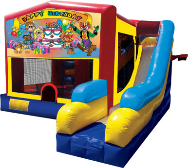 Looking to elevate the excitement at your next birthday bash? Our "Happy Birthday" 7 In 1 is the perfect addition to any celebration! Designed with vibrant colors and adorned with a joyful clown, this bounce house brings a smile to every child's face. 🎈