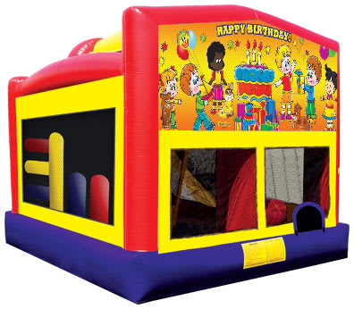 Make your birthday unforgettable by choosing the "Happy Birthday" 5 In 1 Combo, perfect for bringing joy and excitement to any celebration. Whether you’re planning a party for your little one or a fun gathering with friends, this vibrant bounce house combo is sure to be a hit with guests of all ages. Featuring vibrant colors and a welcoming design, it's the ultimate party fixture to bring out smiles and laughter.