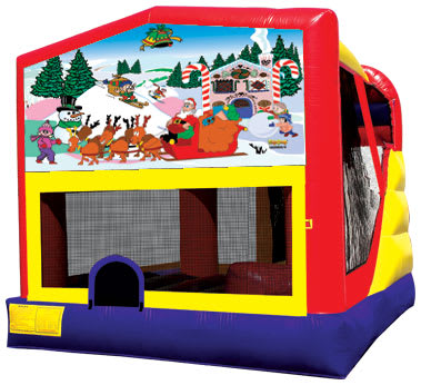 Step into a magical winter wonderland with our "Merry Christmas" 4 In 1 Combo! Perfect for holiday parties, this festive inflatable features a captivating design that will transport kids and adults alike to a whimsical world where Santa and his reindeer reign supreme. Crafted to capture the essence of the holiday season, this bounce house combo is a must-have for any winter celebration.