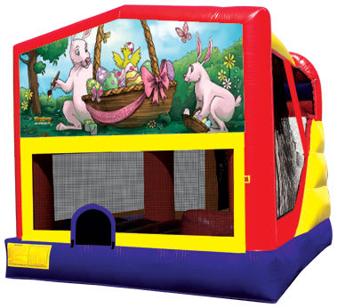 Make your Easter event unforgettable with the "Easter" 4 In 1 Combo, the ultimate inflatable for fun, laughter, and springtime festivities! This magical bouncy house features vivid illustrations of adorable Easter bunnies, cheerful chicks, and a festive basket overflowing with eggs, bringing a world of joy to your backyard or event space. Whether you’re planning a community Easter egg hunt, a church gathering, or a family party, this combo unit is sure to be the highlight of the season.