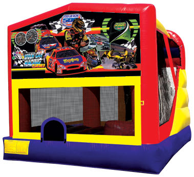 If you're looking for an exciting way to entertain kids, look no further than our "Stock Car" 4 In 1 Combo. We bring the thrill of racing directly to your doorstep. Let the little ones bounce, race, and win their way to endless fun. Book your 'Stock Car' Bounce House Combo today and let the good times roll!