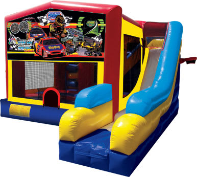 If you're looking for an exciting way to entertain kids, look no further than our "Stock Car" 7 In 1 Combo. We bring the thrill of racing directly to your doorstep. Let the little ones bounce, race, and win their way to endless fun. Book your 'Stock Car' Bounce House Combo today and let the good times roll!